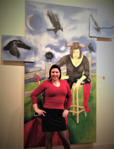 Lainey Kennedy is a self-taught multimedia visual artist with a BA in theatrical scenic painting and design, and loves utilizing those skills to create immersive, conceptual worlds in her paintings and collages. She loves reimagining classic literary and theatrical characters, especially Shakespeare, in different worlds such as steampunk, cyberpunk, and sci-fi space opera. Her art can be seen around Gainesville at Oakley Gallery and Inman Perk Coffee Shop throughout the year. She lives in Cleveland, Georgia, with her wonderful husband and two daughters, Lillian and Clara. When not creating art, she can be found on Brenau’s Historic Campus as the assistant director of event and production services.